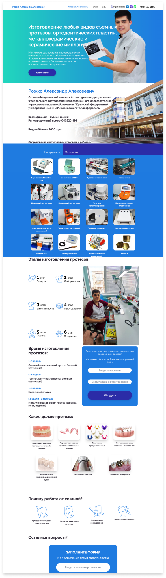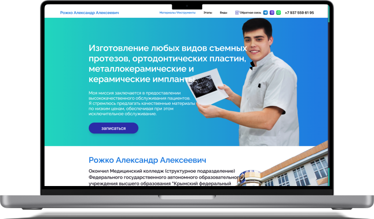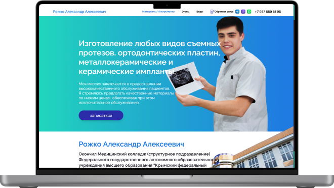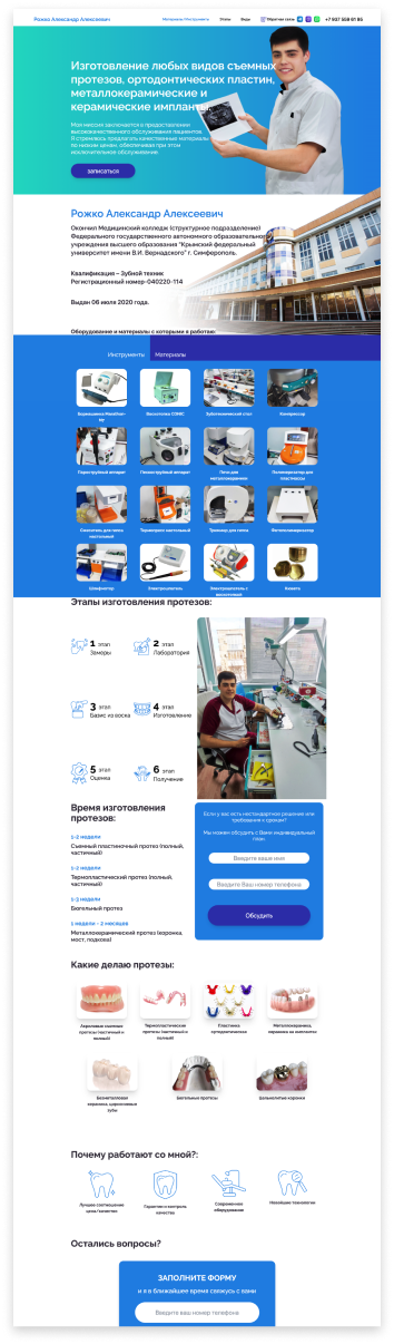 Реализована личная страница зубного техника и интернет-магазин, продажи возросли на 67% по сравнению с продажами через соцсети и прежний сайт.